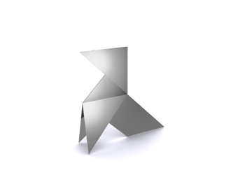 | El papel se transforma en estructura, el acero se convierte en un material ligero en su trabajo y esbelto en su forma. Esta figura de acero, resultante de doblarlo varias veces hasta conseguir la forma deseada, resume nuestra filosofía y forma de trabajar. |